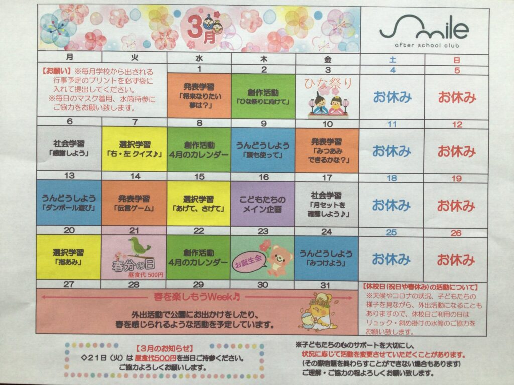 smile 3月の活動予定🌸