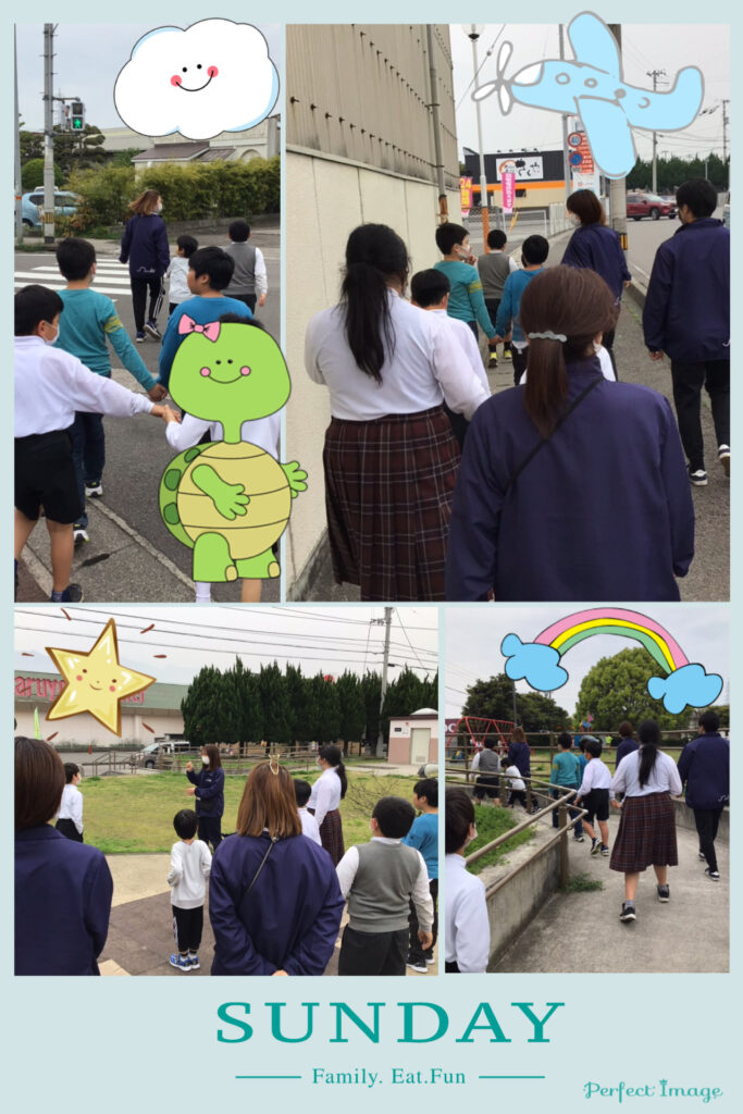 公園まで、お友達と手を繋いで周囲を見ながら、安全に避難したよ👭⭐️