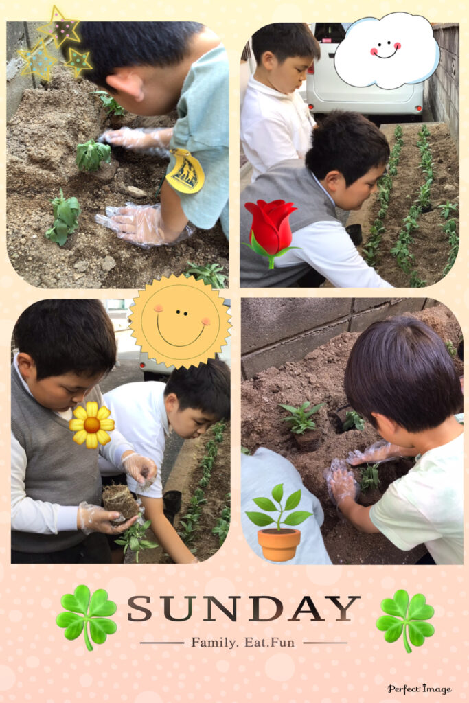 ポットから苗を取り出すのに、苦戦しながらも頑張ったね👍