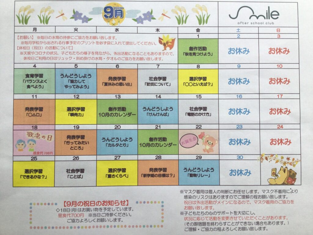 9月の活動予定🌕