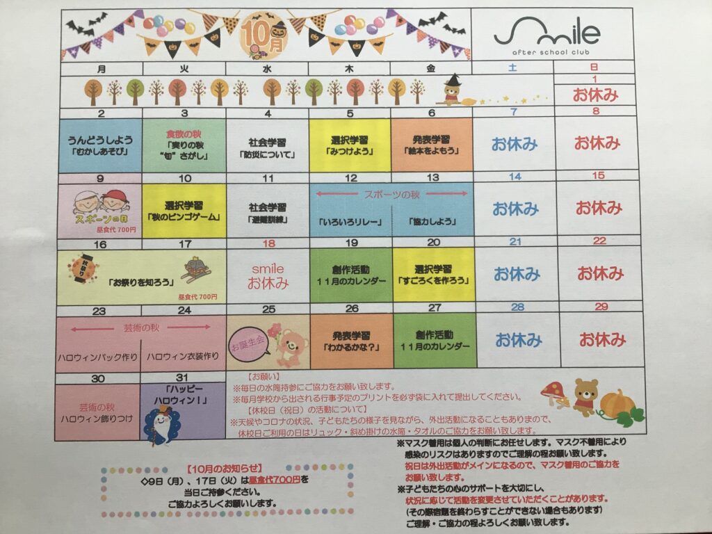 10月の活動予定🌾
