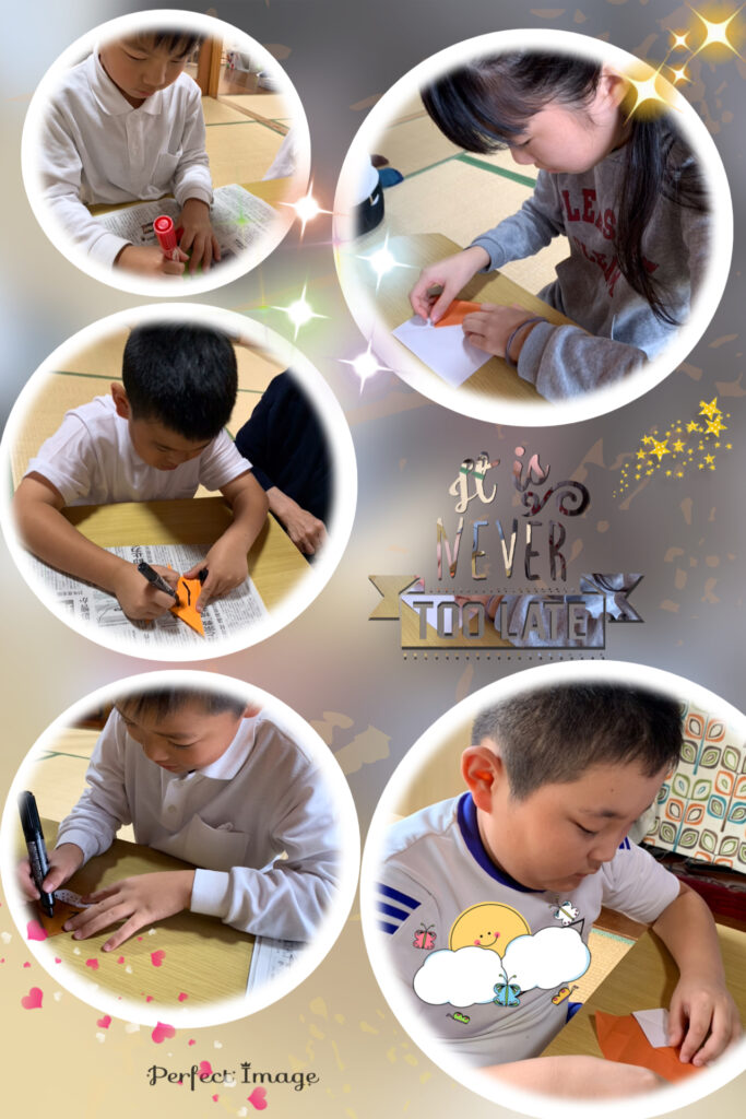 まずはもみじ🍁と栗🌰を折って