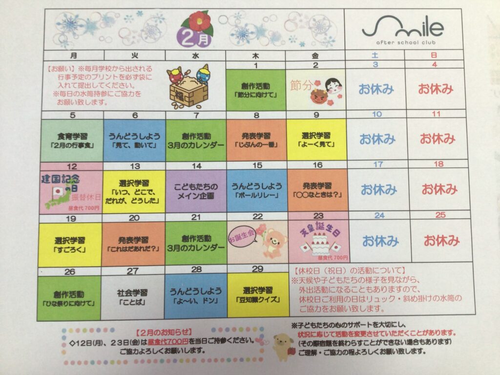 2月は節分👹があったり、祝日にはお出かけをしたり、
