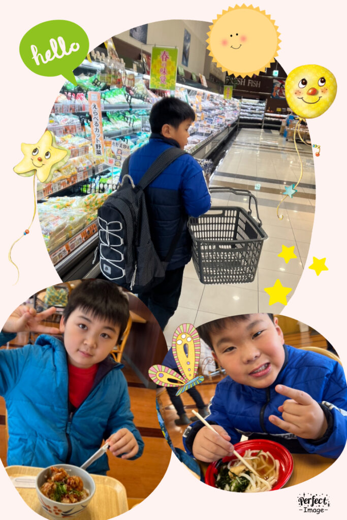 自分の好きなものを買ったり、フードコートで注文したりして、お昼ご飯を選んだよ👍