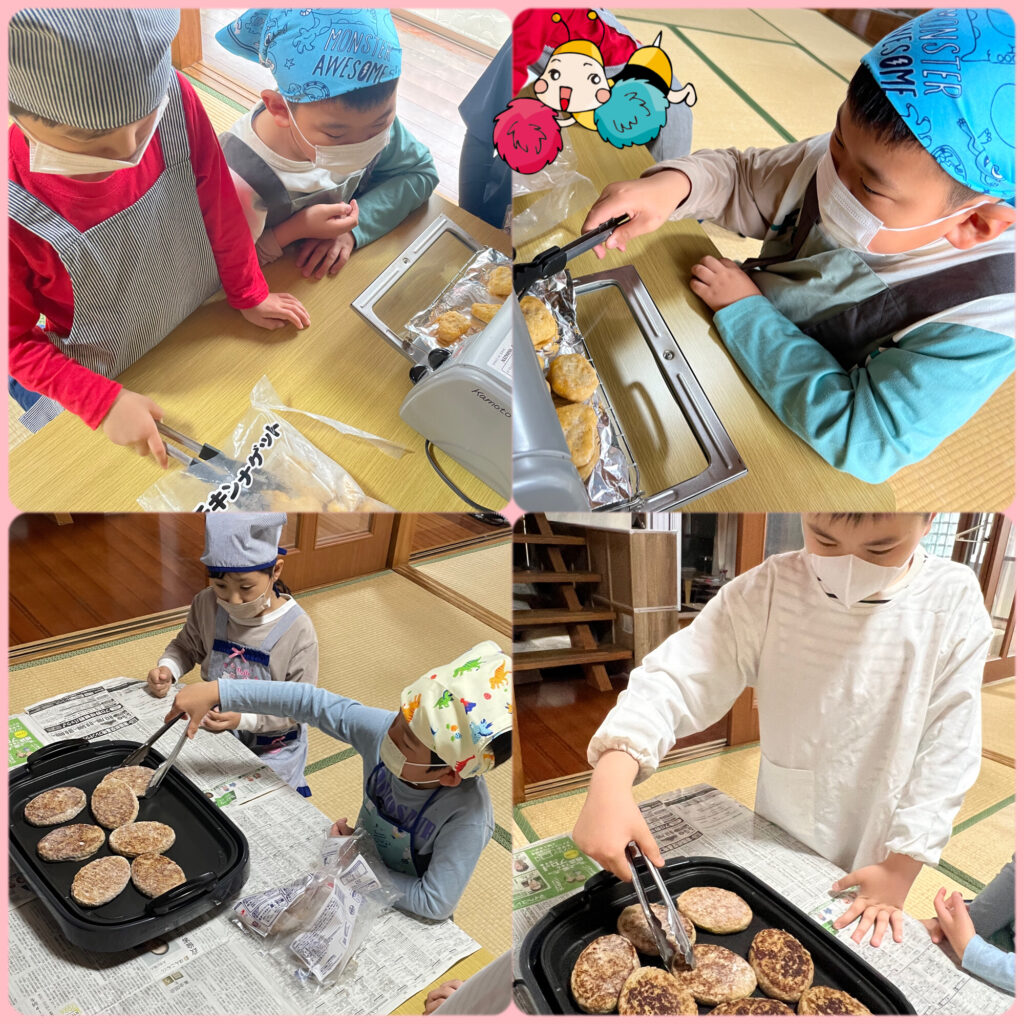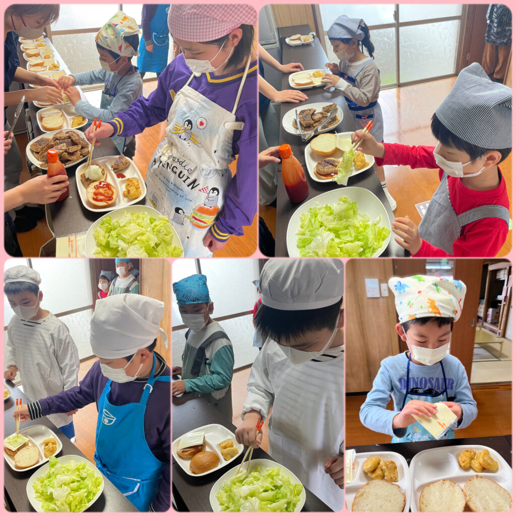 今回はクッキングで、お昼にハンバーガーを作りました🍔