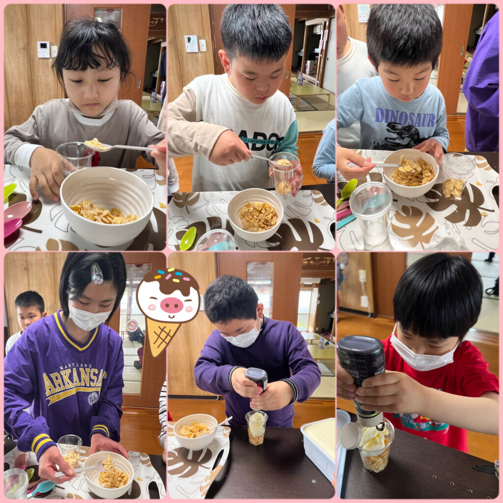 おやつには、アイスパフェも自分でトッピングして作りました🍨