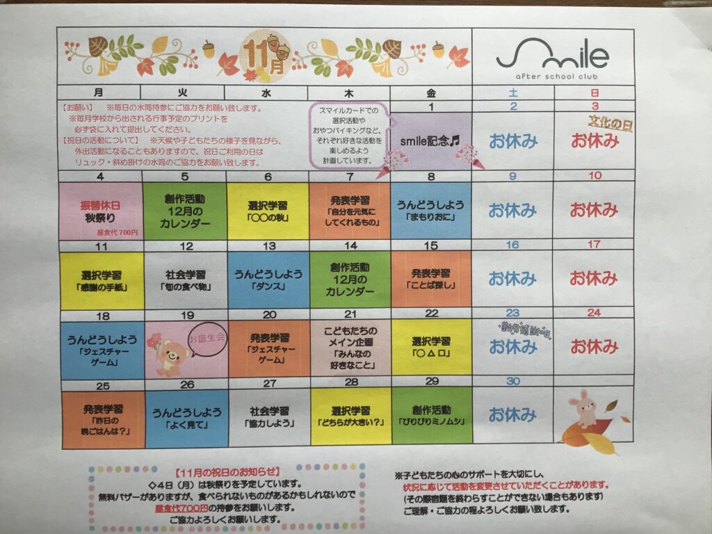 11月はsmileの開所記念💖
