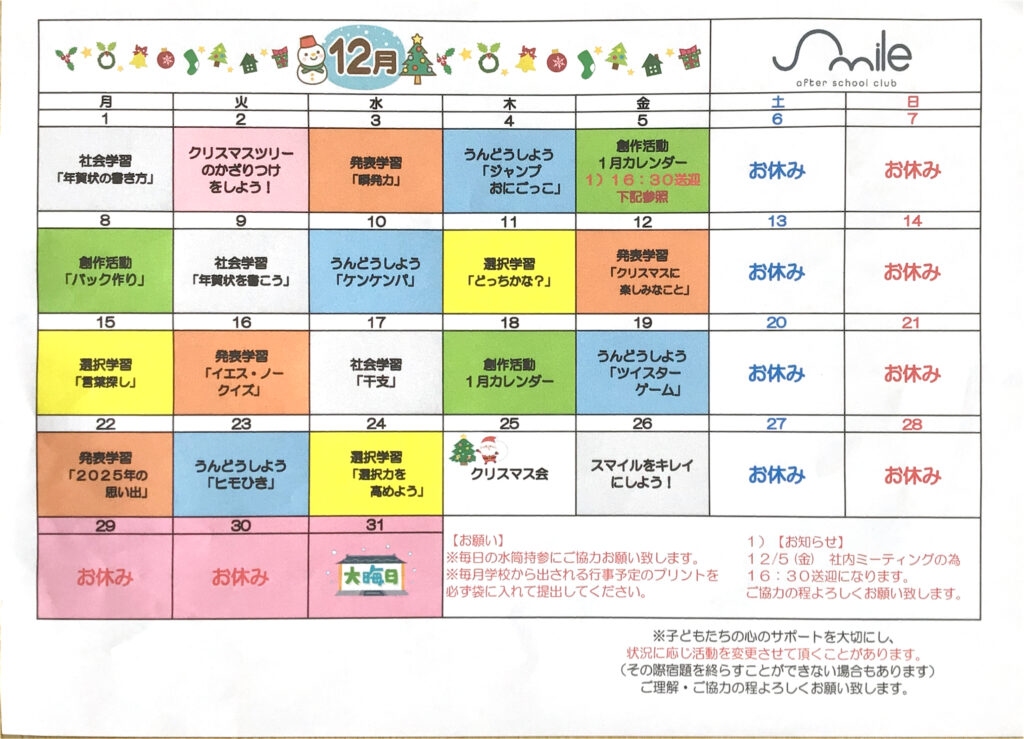 12月の活動予定🌲⛄️