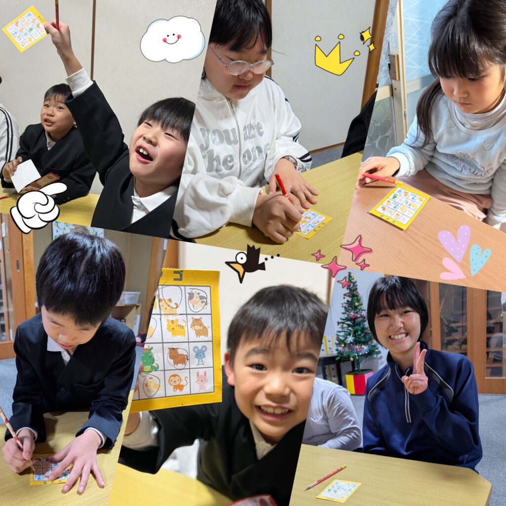 色々な干支の動物に丸をつけながら『リーチ』、「ビンゴー」と大興奮⭐️